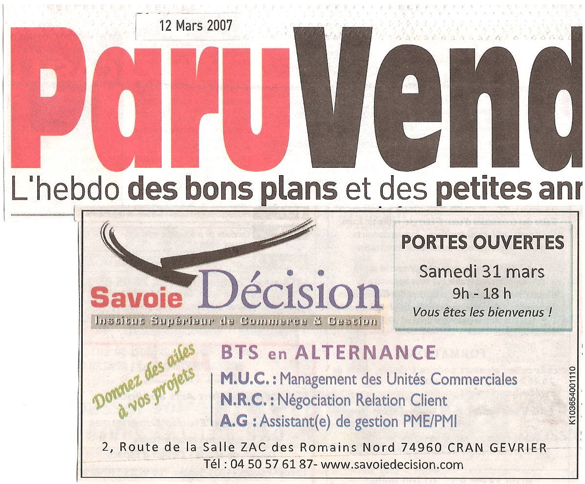 Savoie Décision - ZAC des Romains Nord - 2 route de la Salle, 74960 Cran Gevrier - Tél. 04 50 57 61 87 - Fax. 04 50 67 14 56 - N° Siret [49110444400014] - APE [804C] - CNIL [1168619]