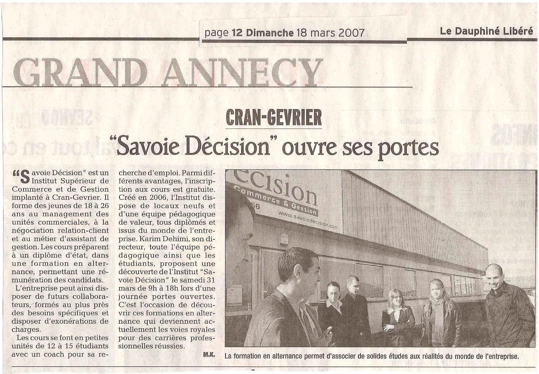 visualiser l'article du Dauphiné Libéré du Dimanche 18 Mars 2007